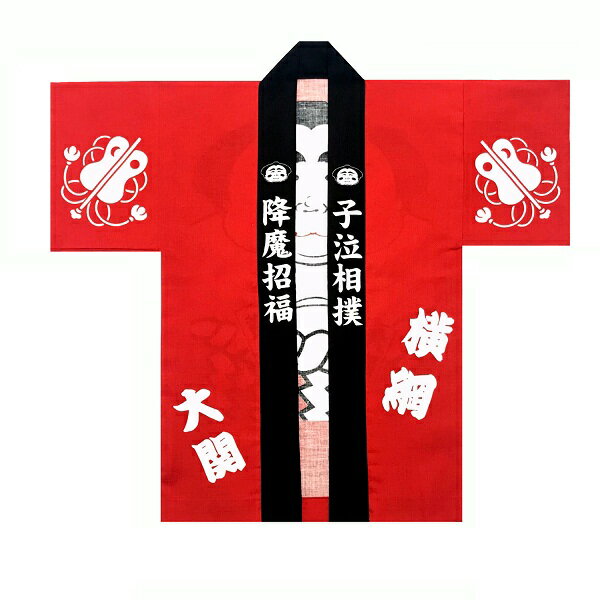 【祭り小物】【その他】【その他】 子ども相撲 子泣きすもう【お祭り 祭り 祭り用品 祭り衣装 祭衣装 まつり matsuri】● 関連キーワード祭り 小物 、祭 衣装 、お祭り衣装 、祭り衣装 、祭り 、子供半纏 こどもはっぴ 子ども用半天 、祭り 衣装 女性用 、お祭り用品 、祭り用品の専門店橋本 、お祭り「子泣き相撲」は長崎県で節分の日に行われる伝統行です。 現在は赤ちゃんの健康を願うイベントとして日本各地で開催されるようになりました。 この半纏はその願いを込めて作られたイベント用のもので可愛らしい関取のキャラクターをあしらった半纏です。 【日本製】 リーズナブルなお値段で、保育園様や福祉施設様など団体のお客様に大変ご好評いただいております。 サイズ身巾 約33cm 袖巾 約11cm 身丈 約47cm色赤柄