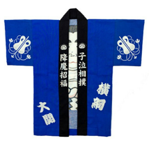 【祭り小物】【その他】【その他】 子ども相撲 子泣きすもう【お祭り 祭り 祭り用品 祭り衣装 祭衣装 まつり matsuri】● 関連キーワード祭り 小物 、祭 衣装 、お祭り衣装 、祭り衣装 、祭り 、子供半纏 こどもはっぴ 子ども用半天 、祭り 衣装 女性用 、お祭り用品 、祭り用品の専門店橋本 、お祭り「子泣き相撲」は長崎県で節分の日に行われる伝統行です。 現在は赤ちゃんの健康を願うイベントとして日本各地で開催されるようになりました。 この半纏はその願いを込めて作られたイベント用のもので可愛らしい関取のキャラクターをあしらった半纏です。 【日本製】 リーズナブルなお値段で、保育園様や福祉施設様など団体のお客様に大変ご好評いただいております。 サイズ身巾 約33cm 袖巾 約11cm 身丈 約47cm色青柄
