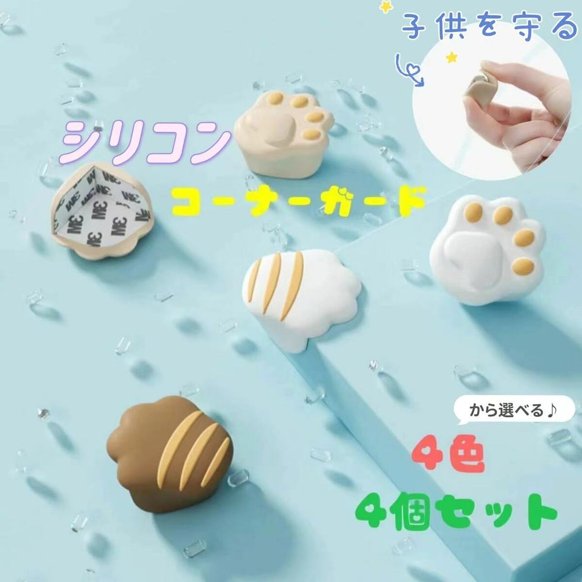 コーナーガード 猫 ねこ 肉球 赤ちゃん ベビー キッズ 転倒防止 4個入 4個セット 強力両面テープ付 クッション テーブル 階段 ベッド 机 角 ぶつかり防止 衝撃 保護 子供 安全 ケガ防止 セーフティーグッズ 4色 かわいい 送料無料