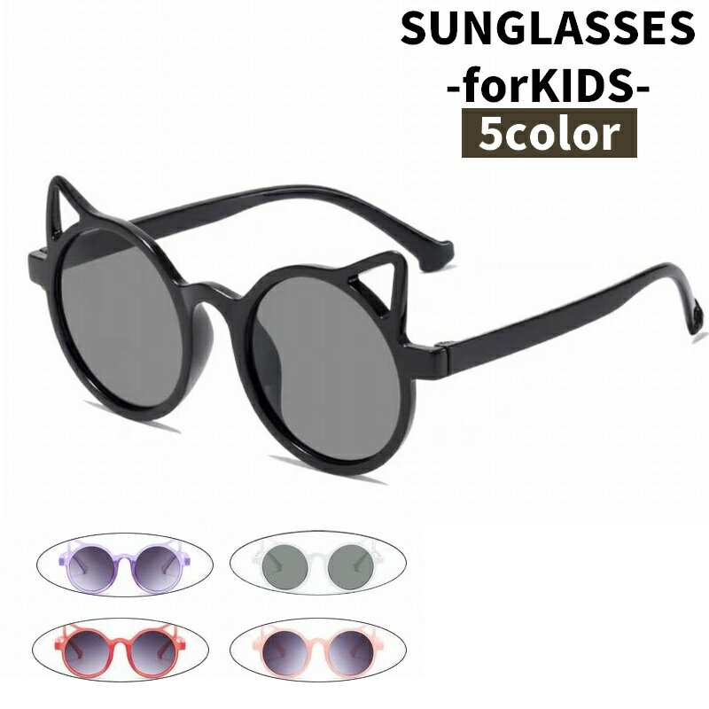 送料無料 KIDSサングラス キッズ こども用 女の子 男の子 サングラス アイウエア ねこ耳付き ラウンドフレーム 丸型 ねこ型 カラーレンズ ファッション小物