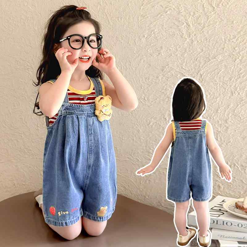 キッズ デニム オーバーオール セットアップ 春夏 子供服 かわいい 半袖 トップス パンツ 2歳 3歳 4歳 5歳 薄手
