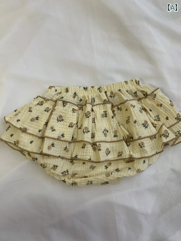 ベビー ブルマ パンツ かわいい 赤ちゃん 女の子 伸縮 ウエストゴム カジュアル フリル プリント 花柄 夏 コットン 普段使い お出かけ レジャー 旅行 黄色