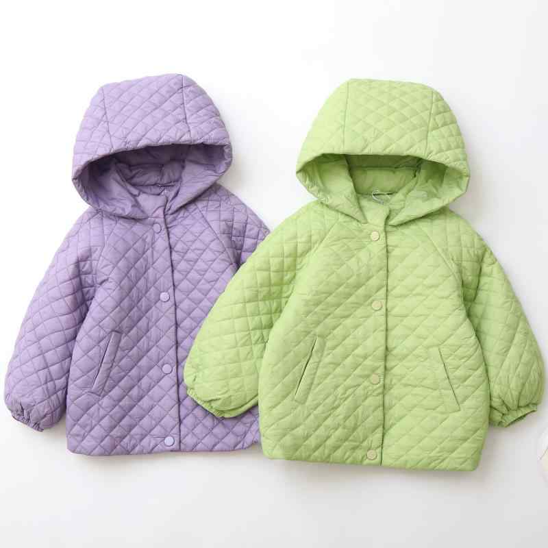 キッズ 男の子 女の子 中綿ジャケット ひし形 キルティング フード付き 薄手 春秋 コットンブレンド ジップアップ カジュアル アウター 小学生 中学生 蛍光グリーン パープル