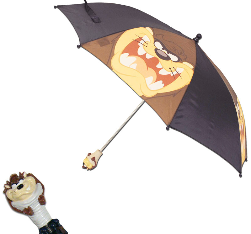 アメリカより、とってもかわいいタズの傘が入荷☆ グリップのデザインが タズに! 傘のイラストもとってもかわいいです♪ 雨の日が楽しくなりますよ〜☆ 開いたサイズ:約70cm 親骨長さ:約40cm 長さ:約53cm 海外直輸入、新品。 ※写真は参考画像になります。 ※閲覧環境等により、実際と色味が異なる場合がございます。 ※新品の未使用品になりますが、入荷時より海外物の為、グリップ部分の分部のペイントが荒く、ペイント削れやムラがあります。 ※新品ではありますが経年物の為、多少サビが生じています。 ご了承くださいませ。