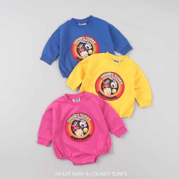 ルーニー・テューンズ キャラクター ロンパース 長袖 ベビー服 ピンク イエロー ブルー カバーオール つなぎ カラフル 赤ちゃん 70cm 黄色 青 スウェット 薄手 子供服 こども服 こどもふく 韓国子供服 ベビー キッズ 男の子 女の子 可愛い お洒落 春 夏 秋 冬