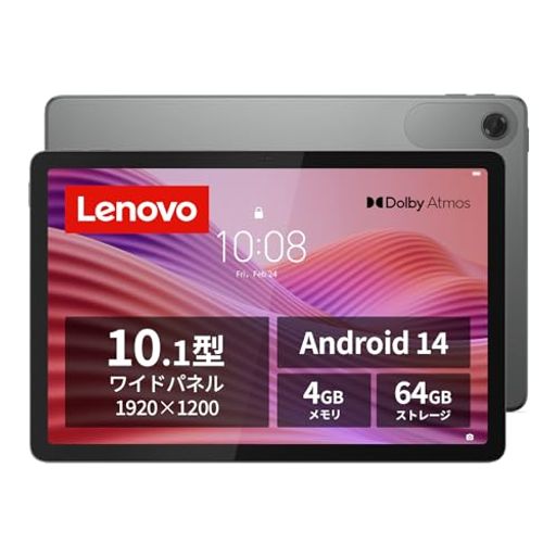 商品情報商品の説明【製品番号】 製品シリーズ:Lenovo Tab K10 製品番号:ZA8N0081JP 保守用製品番号:ZA8N0081JP 【OS】 初期導入済OS:Android 12※1 【プロセッサー】 名称:MediaTek Helio P22T プロセッサー 動作周波数:2.3 GHzクアッドコア+1.8 GHzクアッドコア コア数:8 【メインメモリー】 容量(標準):4GB※2 仕様:LPDDR4x 【フラッシュメモリー】 64GB※3 【表示機能】 ディスプレイサイズ(ドット):10.3型ワイドIPSパネル (1920x1200ドット)※4 タッチパネル:マルチタッチ対応(10点) 外部接続時(ドット):-※5 ワイヤレスディスプレイ: Wi-Fi Display対応 【インターフェース】 USBポート:USB 2 Type-Cポート(OTG機能付き)※6 ディスプレイ関連ポート:なし※6 オーディオ関連ポート:マイクロホン/ヘッドホン・コンボ・ジャック※6 その他:なし※7 【通信機能】 Wi-Fi:802.11a/b/g/n/ac※8 Bluetooth:Bluetooth v5 NFC:なし WWAN :なし 【通信方式】 LTE:- W-CDMA:- 【オーディオ】: オーディオ機能:ドルビーオーディオ スピーカー:スピーカー×2 マイクロフォン:マイクロフォン×2 【スロット】 microSDスロット:microSDメディアカードリーダー(最大128GBまで対応可能)※9 SIMカードスロット:なし※9 【内蔵カメラ(インカメラ/アウトカメラ) 】 画素数:500万画素 / 800万画素 フラッシュ:なし / あり フォーカス方式:FF / AF 【ボタン/センサー類 】 ボタン類:パワーボタン、ボリュームボタン センサー類:加速度センサー、光センサー、近接センサー、ジャイロセンサー、デジタルコンパス、GPS、GLONASS 【本体カラー】 アビスブルー 【寸法・質量】 本体寸法 (W×D×H)mm:約 244.8x153.9x8.2mm 本体質量:約 460g※10 梱包箱寸法(W×D×H)cm:約 16.8x26.3x4.1cm 梱包箱重量:約 731g※10 【電源】 ・バッテリー 種類:リチウムイオンポリマーバッテリー※11 容量:7500mAh※11 使用時間:約 15時間※11 充電時間:約 5.5時間 (ACアダプター使用時)※11 ・ACアダプター 定格電圧:AC 100-240V(50/60Hz)※12 【主な付属品】 マニュアル類、ACアダプター、USB Type-Cケーブル、カードスロットピン 期間:1年間※13 国内での修理:送付修理 メーカーへの送付・梱包料はお客様負担 ※1 初期導入OSのバージョンは生産時期によりアップグレードされる場合があります。旧バージョンにてご購入いただいたお客様にはOTA(Over-the-Air)アップデートにて最新バージョンへご更新いただけます。 ※2 メモリーの拡張・増設はできません。 ※3 ディスク容量は1GB=1000の3乗Byte換算値であり、1GB=1024の3乗Byte換算の場合は表記上同様値でも実際の容量は小さくなります。またOS上での最大ハードディスク容量の数値は、上記表中数値のものよりも小さく表示されます。 ※4 本体の液晶ディスプレイに少数のドットに欠落、変色、発光が見られることがありますが、これは液晶技術に起因するもので製品自体の欠陥によるものではありません。ディスプレイには、数百万個の画素が使用されています。画面上には見えないドット、色が違うドット、または明るいドットが少量存在していることがあります。 ※5接続するモニターによっては表示できない場合があります。 ※6 接続できる全ての機器の動作をするものではありません。 ※7 後日発売予定の専用アクセサリを接続する時に使用する端子です。 ※8 無線LANで、インターネットや既存のLANシステムに接続するにはアクセスポイントが別途必要です。接続にはそれぞれの規格に対応したWi-Fi認定の機器をご利用下さい。電波法の規制により、5.2GHz帯(5.2GHz帯高出力データ通信システムのアクセスポイント/中継局と通信する場合を除く)、5.3GHz帯、5.6GHz帯(上空で利用の場合)による無線LAN通信の屋外利用は禁止されています。 ※9 すべてのカードの動作をするものではありません。 ※10 重量は平均値です。 ※11 お客様によるバッテリーの交換はできません。使用時間/充電時間はご利用状況によって異なります。 ※12 日本国内ではAC100V電源でご使用下さい(ACコードは100V用が付属します)。 ※13 本製品に書は付属しません。サービスを受ける際に製品に付属の購入証明書、または製品購入時の領収書や納品書などが必要になる場合がありますので、必ず保管しておいてください。お電話による無償技術サポートはお買い上げから90日間です。主な仕様 【優れた基本性能】8コアのMediaTek Helio P22T プロセッサーと4GBメモリを搭載。最大約 15時間の長時間駆動が可能で、どこでも快適に使えます。【スリムで軽量なボディ】わずか約8.2mmの薄さ、質量約460gの薄型軽量ボディーで、バックにらくらく収納できます。重さを気にせず、どこにでも持ち運んで使うことができます。【鮮やかで精細な映像】10.3型ワイドIPSパネル (1920x1200ドット) を搭載。鮮やかで精細な映像を広い視野角で表示できます。【臨場感あふれるサウンド】ドルビーオーディオ対応のステレオスピーカーを搭載。動画や音楽などを臨場感あふれる迫力あるサウンドで楽しめます。【ビジネスでも安心して使える】AER(Android Enterprise Recommended)と認定されたことで、Android Enterprise機能が問題なく稼働できること