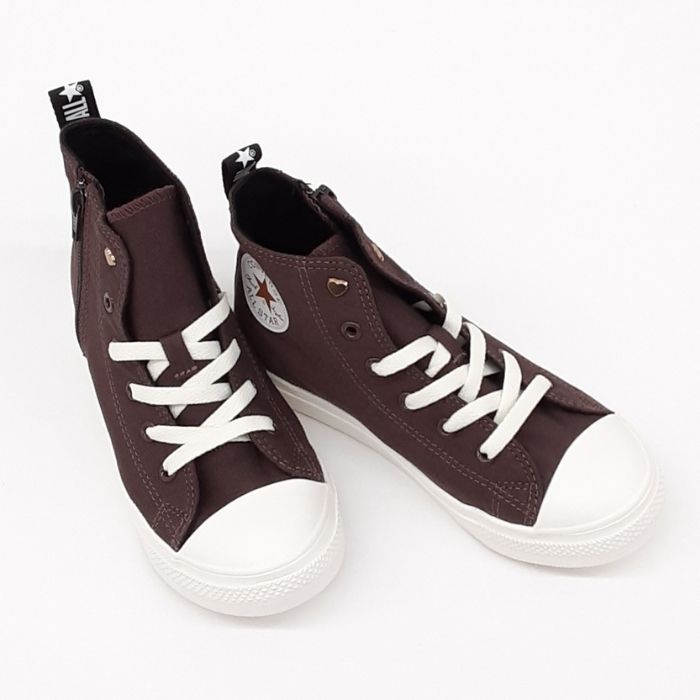 コンバース チャイルド オールスター ライト ハートスタッズ ジップ ハイカットCONVERSE CHILD ALL STAR LIGHT HEARTSTUDS Z HIキッズ ジュニア ファスナー スニーカーチョコレート送料無料 軽量 ハイ HI 子供 女子 キャンバス