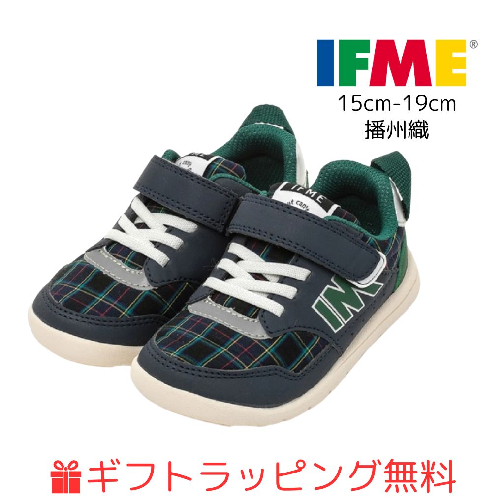 【ギフト無料】キッズ (15cm〜19cm) 播州織 カジュアル ゴアベルト チェック ライトソール スニーカー ifme 20-4823シューズ 子供靴 軽い 春夏 秋冬 スニーカー マジックテープ 運動靴 light