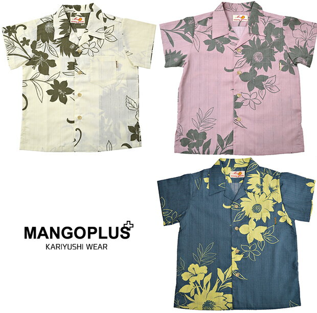 【 120〜140cm】Kid's キッズかりゆしウェア シルエットフラワー(MANGOマンゴ)キッズアロハ(日本製) かりゆしウェア キッズかりゆし アロハシャツ かりゆし キッズ シャツ 沖縄 結婚式 MANGO PLUS マンゴ プラス