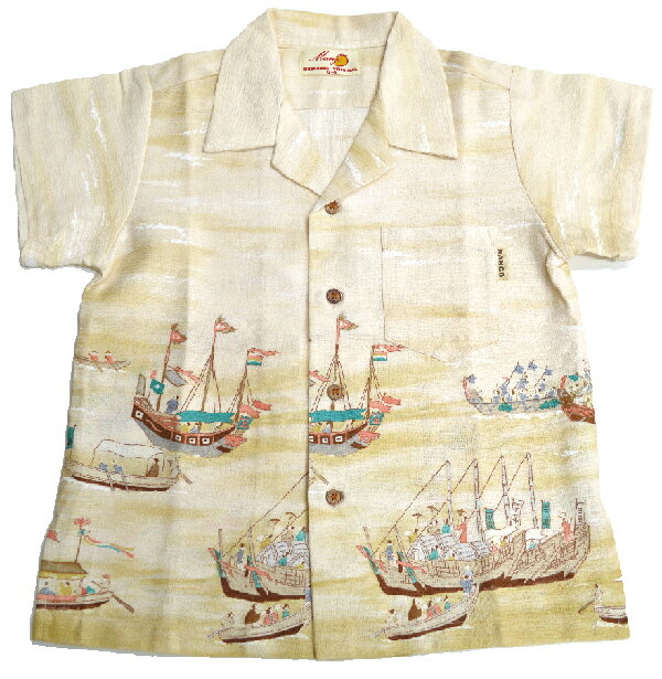 【110cm】Kid's キッズかりゆしウェア (琉球ヴィンテージ)アイボリー 110cm(MANGOマンゴ) かりゆしウェア キッズかりゆし アロハシャツ かりゆし キッズ シャツ 沖縄 結婚式 MANGO PLUS マンゴ プラス
