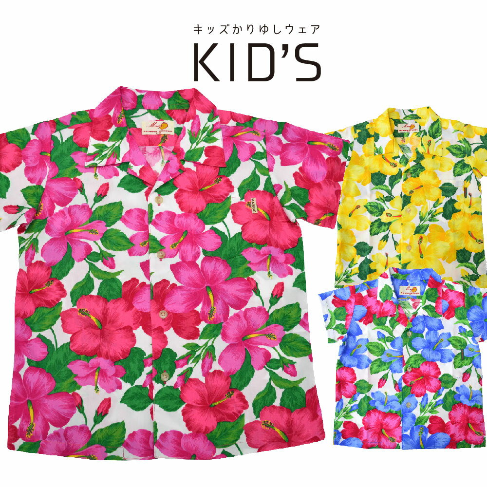 【 120~140cm】キッズ かりゆしウェア ハイビスカス | キッズ かりゆしウェア かりゆし 結婚式 シャツ 子供用 アロハシャツ リゾート 沖縄 お土産 MANGO PLUS マンゴ プラス プレゼント オープンシャツ ウエディング