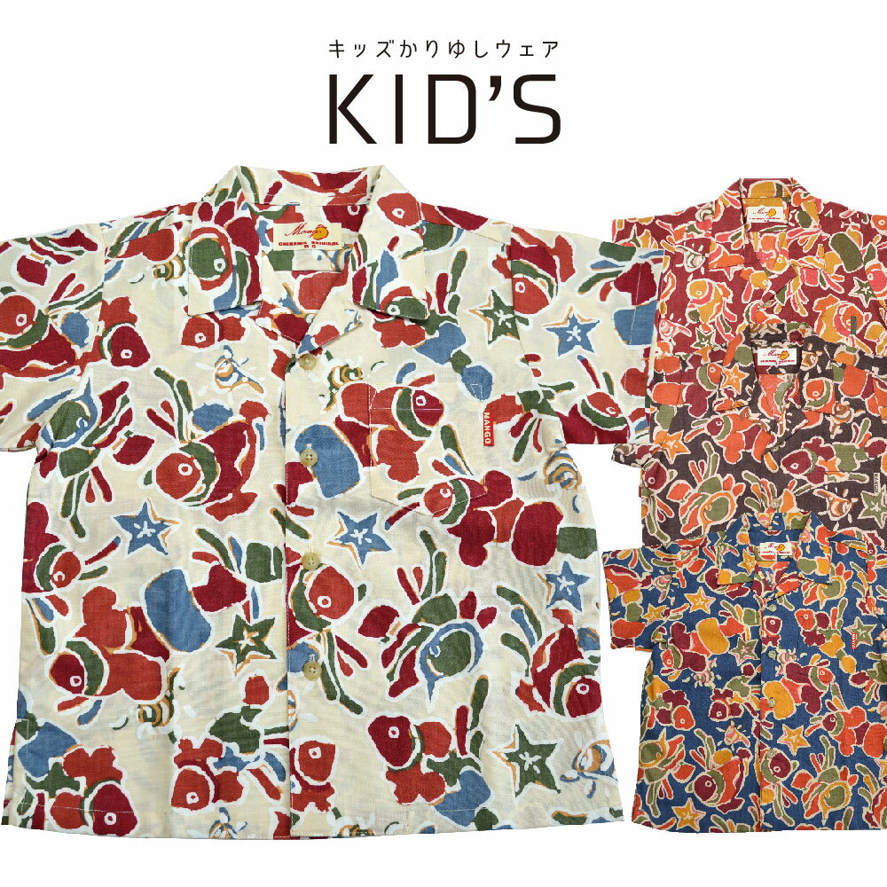 かりゆしウェア キッズ 親子 結婚式 ウェディング 沖縄 かりゆし シャツ アロハ アロハシャツ 開襟 オープンカラー MANGO HOUSE マンゴハウス 国産 リゾート お揃い ペア キッズシャツ シーサークイナアクティビティ