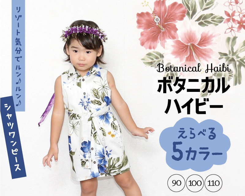 かりゆしウェア キッズ 親子 結婚式 ゴルフ 沖縄 かりゆし シャツ アロハ アロハシャツ MANGO HOUSE マンゴハウス 国産 リゾート お揃い ペア シャツワンピース ボタニカルハイビー 90cm~110cm