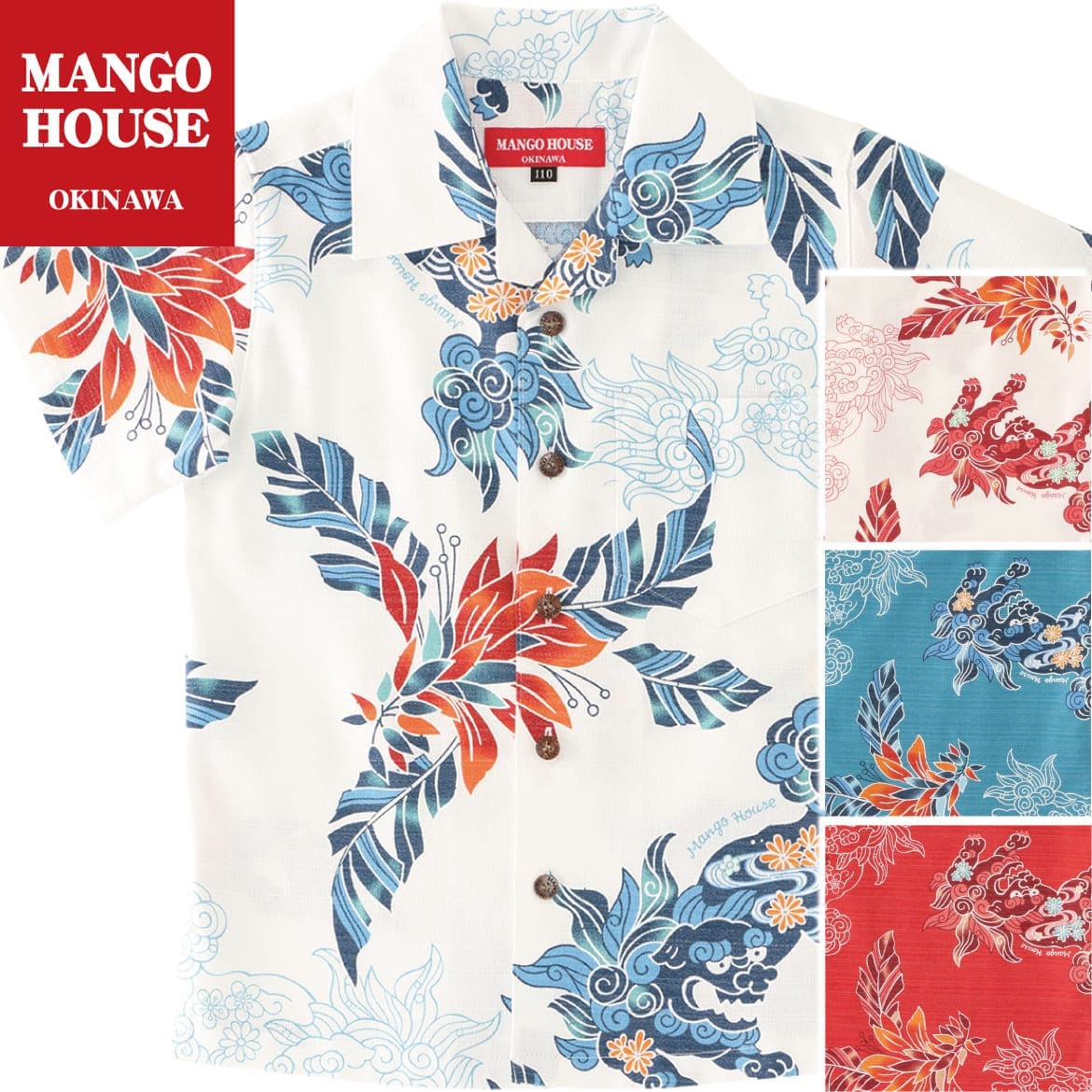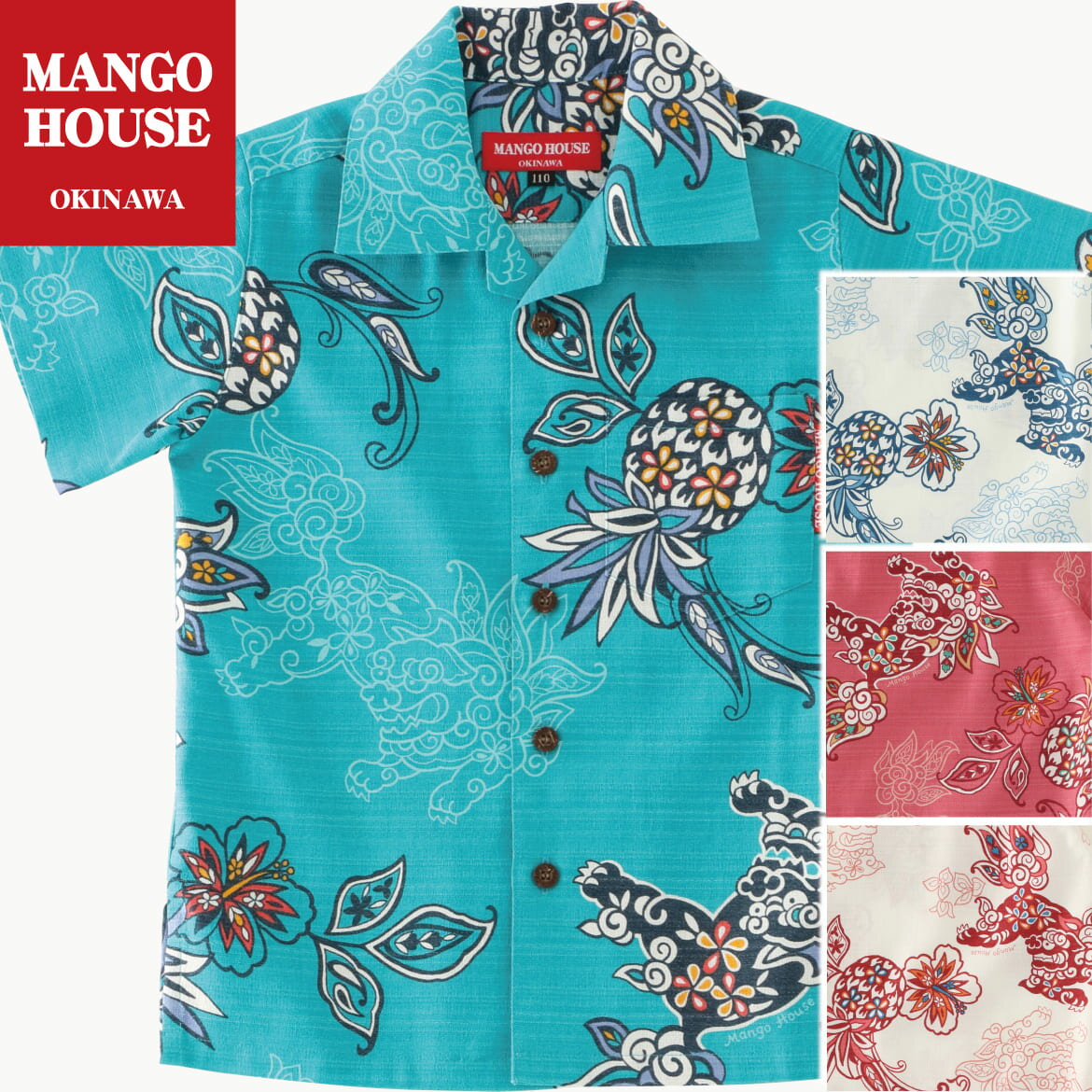 かりゆしウェア キッズ 親子 結婚式 ウェディング 沖縄 かりゆし シャツ アロハ アロハシャツ 開襟 オープンカラー MANGO HOUSE マンゴハウス 国産 リゾート お揃い ペア キッズシャツ 255052 あっちゃめシーサー