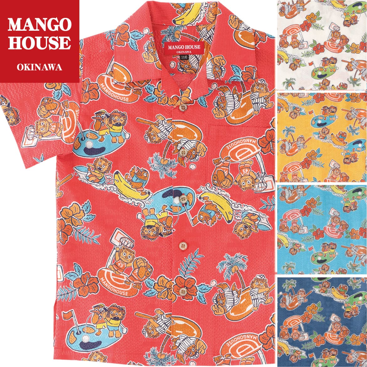 かりゆしウェア キッズ 親子 結婚式 ウェディング 沖縄 かりゆし シャツ アロハ アロハシャツ 開襟 オープンカラー MANGO HOUSE マンゴハウス 国産 リゾート お揃い ペア 245054 キャンピングシーサー