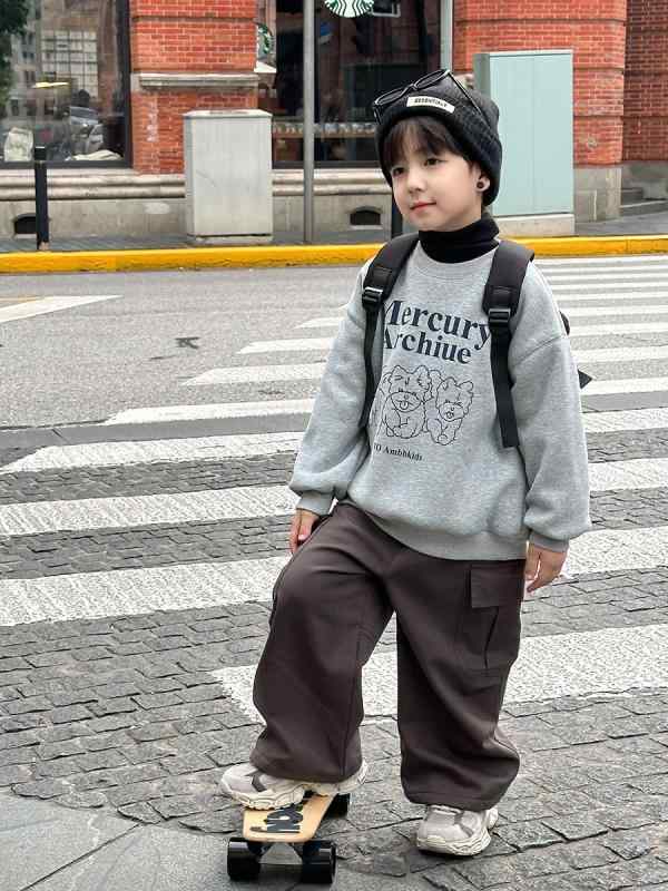 子供用スウェットシャツ キッズ 男女兼用 裏起毛 厚手 冬服 長袖 トップス カットソー カートゥーン柄 90cm 100cm 110cm 120cm 130cm 140cm 150cm 160cm 綿混紡 普段着 部屋着 かわいい 暖かい