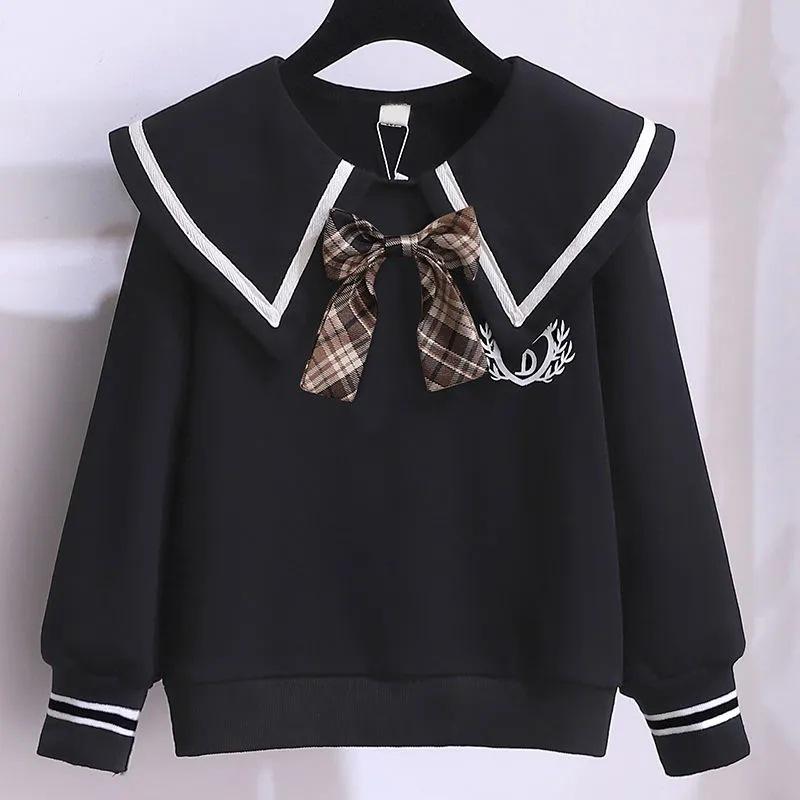 スウェット キッズ 女の子 付け襟 ドールカラー スクール風 プレッピー カジュアル 長袖 プルオーバー おしゃれ かわいい 春秋 綿素材 小中高生