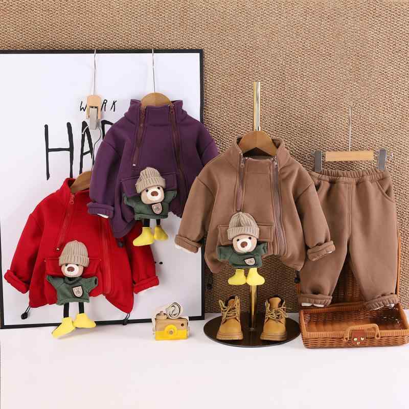 ・カテゴリ: キッズセットアップ・性別: 男性・スタイル: カジュアル・セットタイプ: パンツセット・セット点数: 2点・ギフトボックス内容: 服・対象年齢: 1〜3歳(身長80〜100cm)・袖丈: 長袖・パンツ丈: 長ズボン・生地加工: 柔らか加工・厚さ: 裏起毛・柄: 動物、キャラクター・デザイン要素: スポーツ、セットアップ、キャラクター、可愛い、股下ボタン付き・生地名: 綿・主な素材: 綿・主な素材の割合: 綿95%・開閉タイプ: ジップアップ・カラー展開: ブラウン、パープル、レッド・身長展開: 80cm、90cm、100cm、110cm、120cm