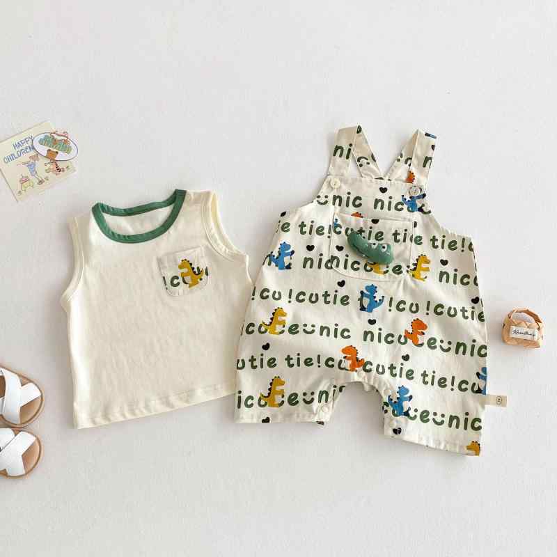 子供用セットアップ 恐竜柄 タンクトップ ショートパンツ 韓国風 コットン100% 夏
