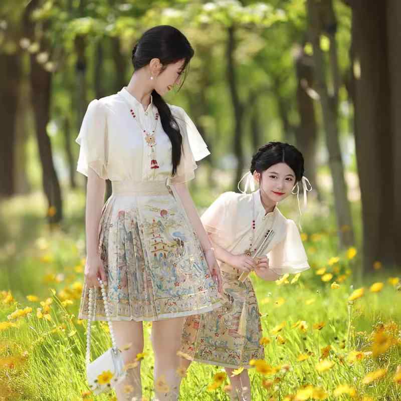 チャイナドレス 親子 ペアルック スカートセット 子供 女の子 唐装風 織柄 ポリエステル 花柄 薄手 春夏 120 130 140 150 160 S M L XL