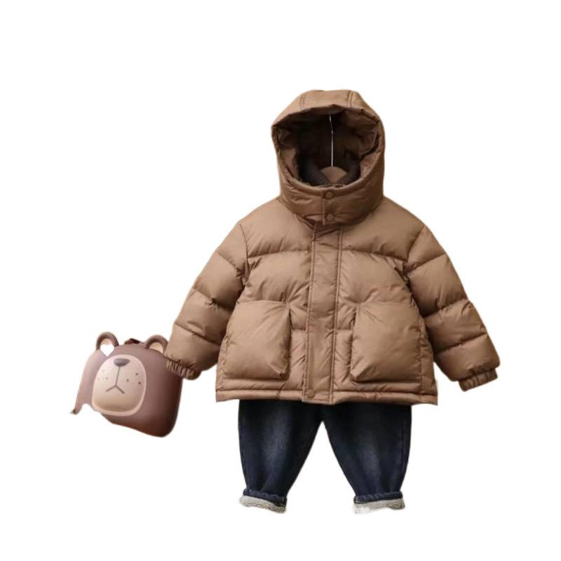 子供用綿入りジャケット キッズ 男女兼用 アウター 中綿入り 厚手 フード付き 8歳以上 冬 黒 カーキ
