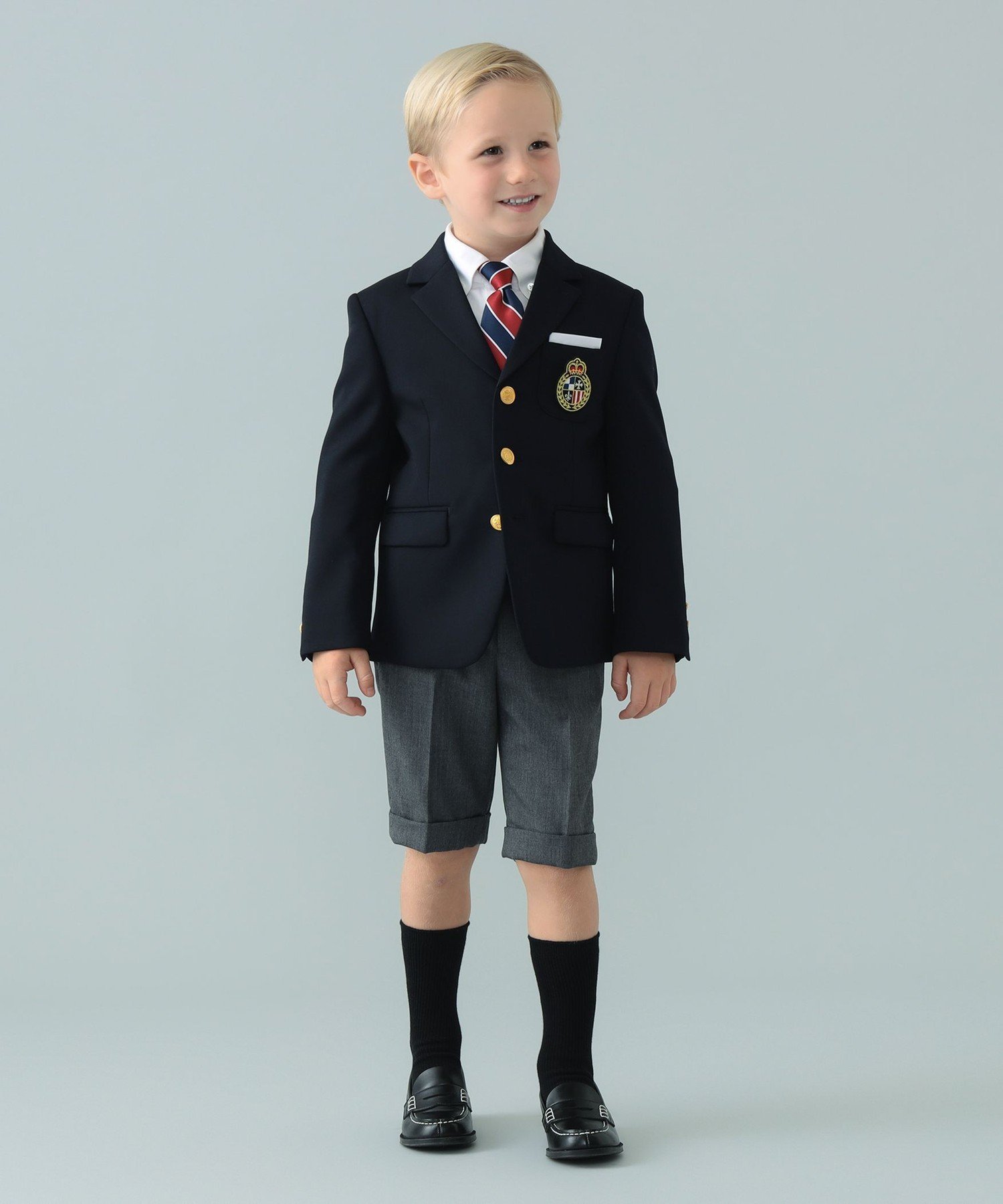 こども ビームス(コドモ ビームス)CHOPIN with Kodomo BEAMS / セレモニー ブレザーセット(110~130cm) ビームスセレモニー2026 26SS卒園式・入学式に!アイビーなブレザーセットお子さまの大事な記念日に、全身コーディネートで揃うスーツセットです。シャツ・スーツ・タイ・ポケットチーフを全てセットにしてお届け。チーフ以外はそれぞれ別々にも着用可能なので、用途に合わせてアレンジして楽しんでも◎。〈こどもビームス〉らしい洗練されたスタイリングが叶います。スーツにはウール100%の上質な生地を使用。ブレザースタイルに欠かせない、ソリッドカラーのボタンダウンシャツに、レッド&ゴールドのラインが映えるカレッジ風のレジメンタルタイを採用。タイはストライプが右下がりのリバースに。またワンタッチで留められるアタッチメントタイプなので、着用も容易です。ショーツの裾はダブルで仕上げ、子どもらしいカジュアルなアイビールックを体現。タイとチーフをあえて同柄にせず、チーフはセレモニー要素の強いホワイトを合わせたところもビームスらしいポイントです。記念に残るハレの日だからこそ、きちんとこだわったスタイルで迎えたいもの。洗練されたスタイリングが叶う、スタンダードであり特別な一着です。※スーツ・シャツ:ベトナム製 ネクタイ・ポケットチーフ:中国製【対象年齢:およそ6ー9歳】Model:H117(cm)Size:120Model:H108(cm)Size:110※光の当たり具合やパソコンなどの閲覧環境によって実際の色味と異なって見える場合がございます。予めご了承ください。※商品の色味は商品単体で撮影した画像をご参照ください。CHOPINwithKodomoBEAMS/ショパンウィズコドモビームス1958年創業から50年以上培ってきた高い技術で品質の高さにこだわった、こどもフォーマル専門ブランド<CHOPIN(ショパン)>。見た目の美しさだけでなくやさしい着心地や耐久性も考えて細部まできちんと丁寧に作られた<CHOPIN>のフォーマルウェアに、<こどもビームス>のエッセンスを加えたディレクションで誕生した新たなフォーマルコレクションです。Model:H108(cm)Size:110型番:55-17-0007-289-79-18 GN7286【採寸】サイズ着丈肩幅身幅そで丈ウエスト股上股下すそ周りもも周りヒップ最大幅全長110ジャケット:43.1, シャツ:50.2cmジャケット:29.1, シャツ:29.8cmジャケット:35.0, シャツ:34.5cmジャケット:39.0, シャツ:37.7cm56.0~60.0cm19.4cm18.3cm32.2cm40.8cm67.4cmネクタイ:6.0cmネクタイ:26.0cm120ジャケット:46.9, シャツ:54.5cmジャケット:30.1, シャツ:32.3cmジャケット:35.0, シャツ:36.6cmジャケット:42.7, シャツ:42.0cm60.0~64.0cm20.6cm20.0cm34.6cm43.4cm70.2cmネクタイ:6.0cmネクタイ:26.0cm130ジャケット:51.5, シャツ:57.0cmジャケット:32.8, シャツ:32.8cmジャケット:39.3, シャツ:39.4cmジャケット:47.3, シャツ:45.0cm68.0~72.0cm21.1cm23.2cm34.8cm46.0cm75.6cmネクタイ:6.2cmネクタイ:29.0cm商品のサイズについて【商品詳細】_素材:ジャケット表地:毛100% ジャケット裏地:ポリエステル100% シャツ:コットン100% パンツ:毛100% ネクタイ:ポリエステル100%サイズ:110、120、130※画面上と実物では多少色具合が異なって見える場合もございます。ご了承ください。商品のカラーについて 【予約商品について】 ※「先行予約販売中」「予約販売中」をご注文の際は予約商品についてをご確認ください。■重要なお知らせ※ 当店では、ギフト配送サービス及びラッピングサービスを行っておりません。ラッピング・ギフト配送について同時に複数の商品を注文された場合メーカー希望小売価格についてご利用ガイドこども ビームス(コドモ ビームス)CHOPIN with Kodomo BEAMS / セレモニー ブレザーセット(110~130cm) ビームスセレモニー2026 26SS卒園式・入学式に!アイビーなブレザーセットお子さまの大事な記念日に、全身コーディネートで揃うスーツセットです。シャツ・スーツ・タイ・ポケットチーフを全てセットにしてお届け。チーフ以外はそれぞれ別々にも着用可能なので、用途に合わせてアレンジして楽しんでも◎。〈こどもビームス〉らしい洗練されたスタイリングが叶います。スーツにはウール100%の上質な生地を使用。ブレザースタイルに欠かせない、ソリッドカラーのボタンダウンシャツに、レッド&ゴールドのラインが映えるカレッジ風のレジメンタルタイを採用。タイはストライプが右下がりのリバースに。またワンタッチで留められるアタッチメントタイプなので、着用も容易です。ショーツの裾はダブルで仕上げ、子どもらしいカジュアルなアイビールックを体現。タイとチーフをあえて同柄にせず、チーフはセレモニー要素の強いホワイトを合わせたところもビームスらしいポイントです。記念に残るハレの日だからこそ、きちんとこだわったスタイルで迎えたいもの。洗練されたスタイリングが叶う、スタンダードであり特別な一着です。※スーツ・シャツ:ベトナム製 ネクタイ・ポケットチーフ:中国製【対象年齢:およそ6ー9歳】Model:H117(cm)Size:120Model:H108(cm)Size:110※光の当たり具合やパソコンなどの閲覧環境によって実際の色味と異なって