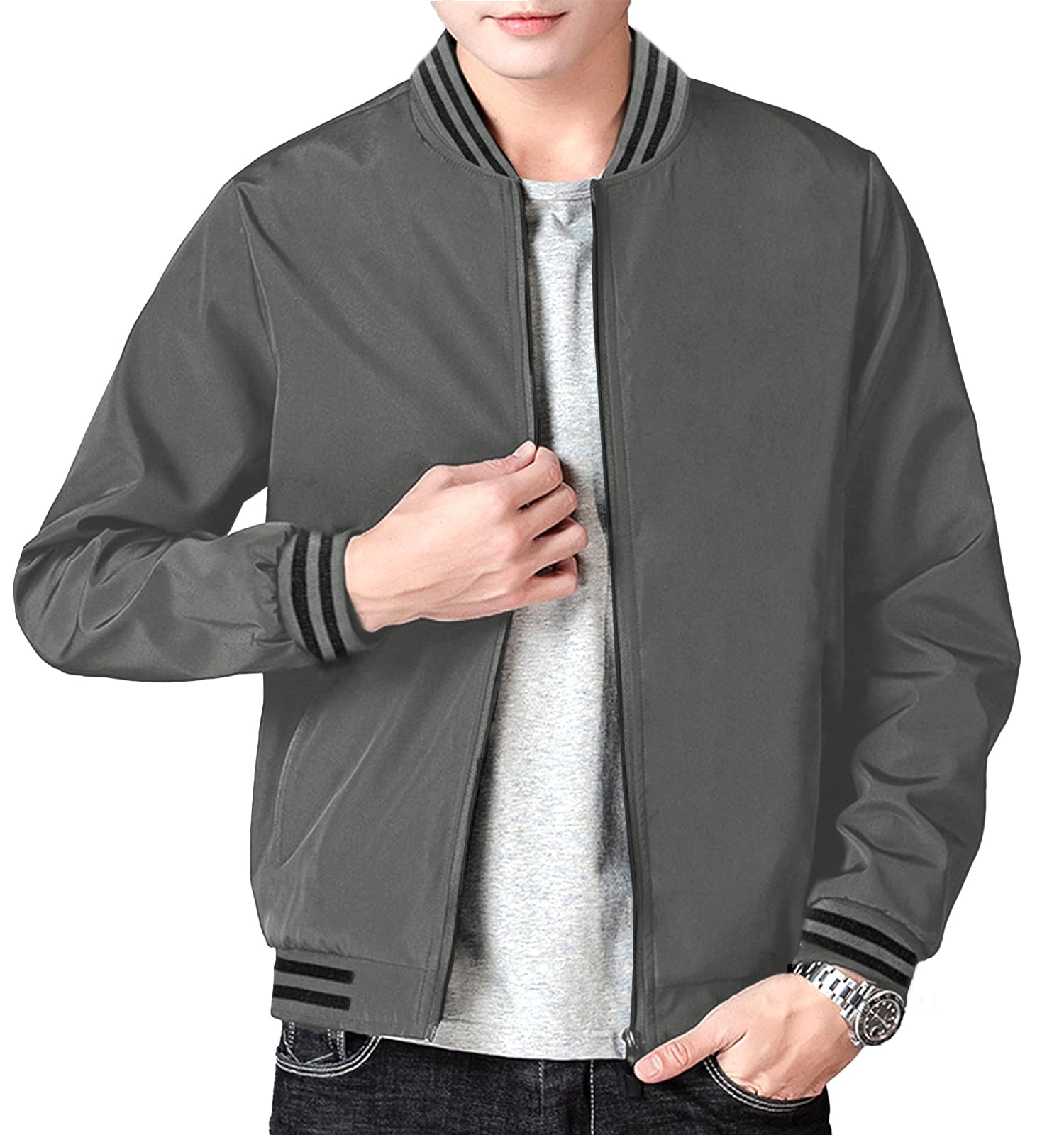 【送料無料】[Ranmy Stage] ジャンパー メンズ ブルゾン MEN'S ジャケット 上着 カジュアル ライトジャケット 薄手 ウィンドブレーカー 撥水 アウター スタジャン 春 秋 色:グレー、サイズ:XL