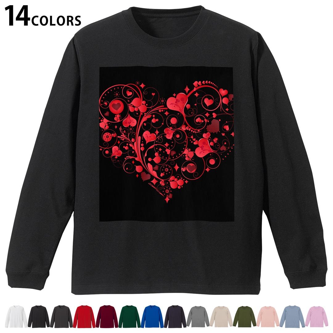 選べる14カラー 長袖リブ付きTシャツ メンズ レディース ユニセックス unisex 長袖 デザイン XS S M L XL 2XL Tシャツ ロング ティーシャツ T shirt 007587 ハート 赤 レッド 黒 ブラック
