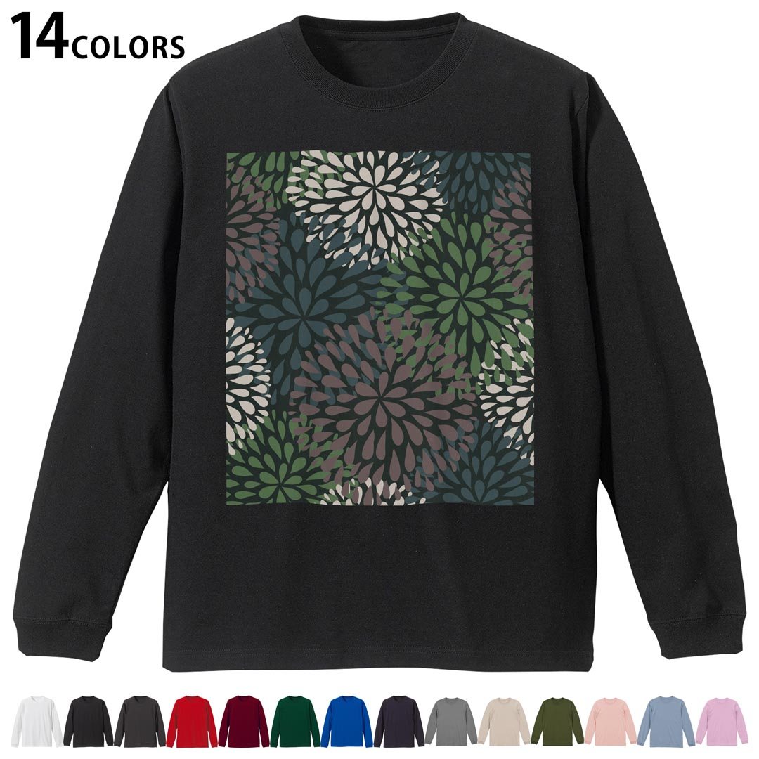 選べる14カラー 長袖リブ付きTシャツ メンズ レディース ユニセックス unisex 長袖 デザイン XS S M L XL 2XL Tシャツ ロング ティーシャツ T shirt 008740 黒 ブラック 花