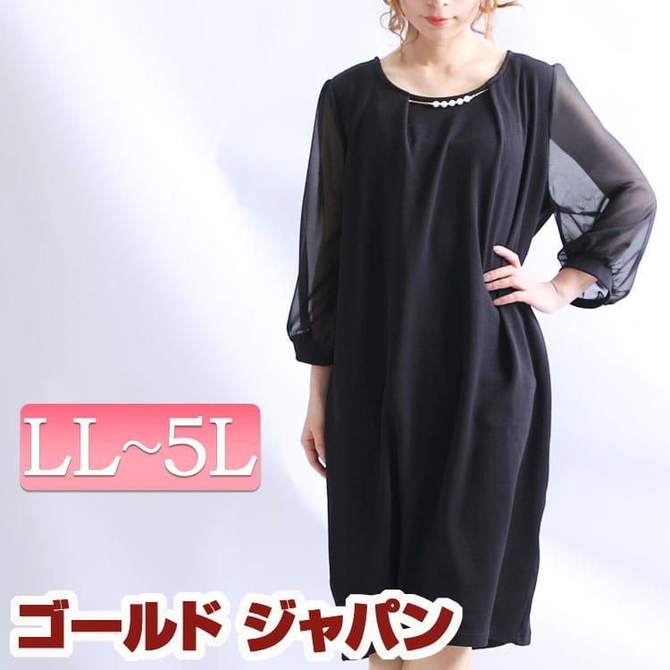 大きいサイズ レディース 春ワンピース 夏ワンピース 秋ワンピース 冬ワンピース 20代 30代 40代 50代 異素材 七分袖 透け袖 薄手 シンプル 体型カバー オケージョン 通勤 正装 ビジューチャーム ビジュー付き コクーン 着痩せ LL 2L 3L 4L 5L XL XXL 黒 ブラック black¬
