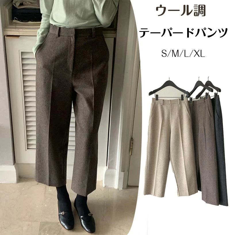 【送料無料】テーパードパンツ パンツ ウール調 レディース 秋冬 ボトムス 九分丈 ロングパンツ ハイウエスト ストレートパンツ 美脚 美ライン きれいめ ロング ゆったり オフィス オケージョン フォーマル 体型カバー 太ももカバー 着痩せ