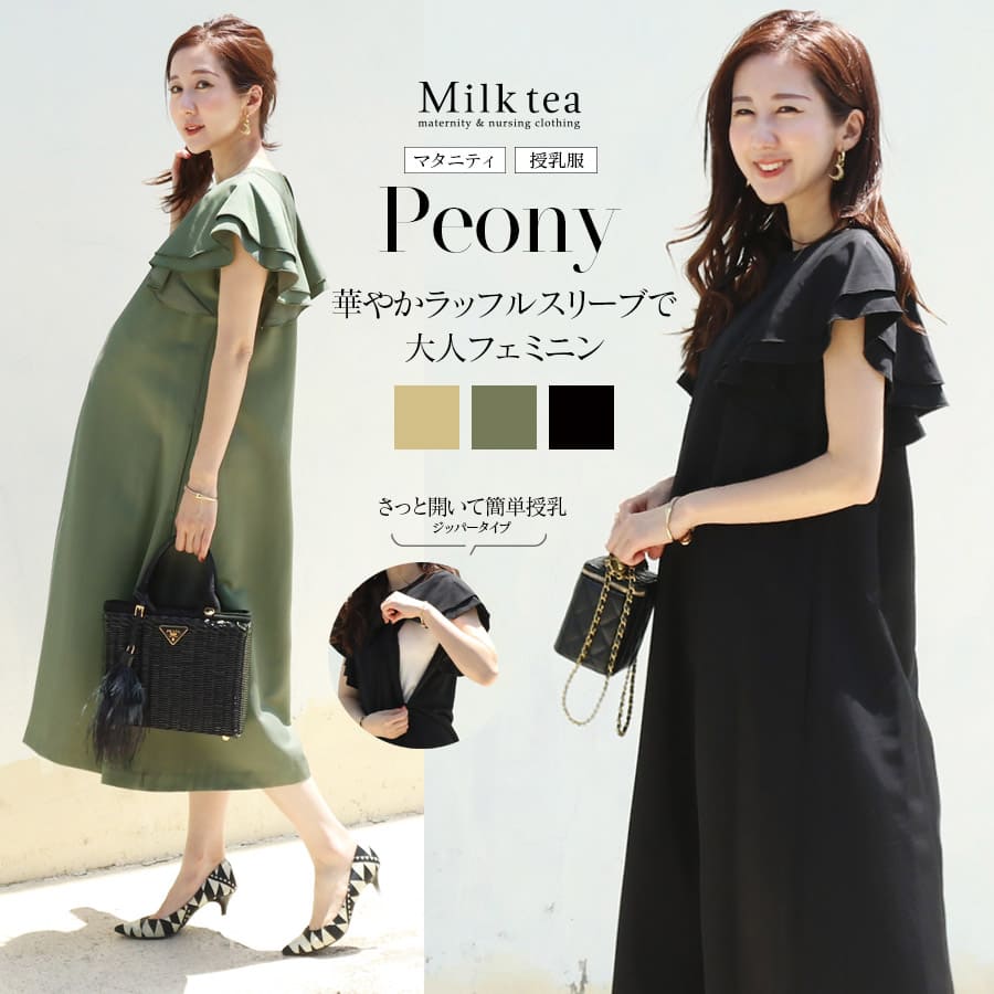 <授乳服・マタニティ>ピオニー・ラッフルスリーブリッチワンピース(ジッパータイプの授乳口)【6315235】 授乳服 マタニティウエア ワンピース ワンピ フォーマル オケージョン お宮参り 卒入園 卒入学 Milk tea