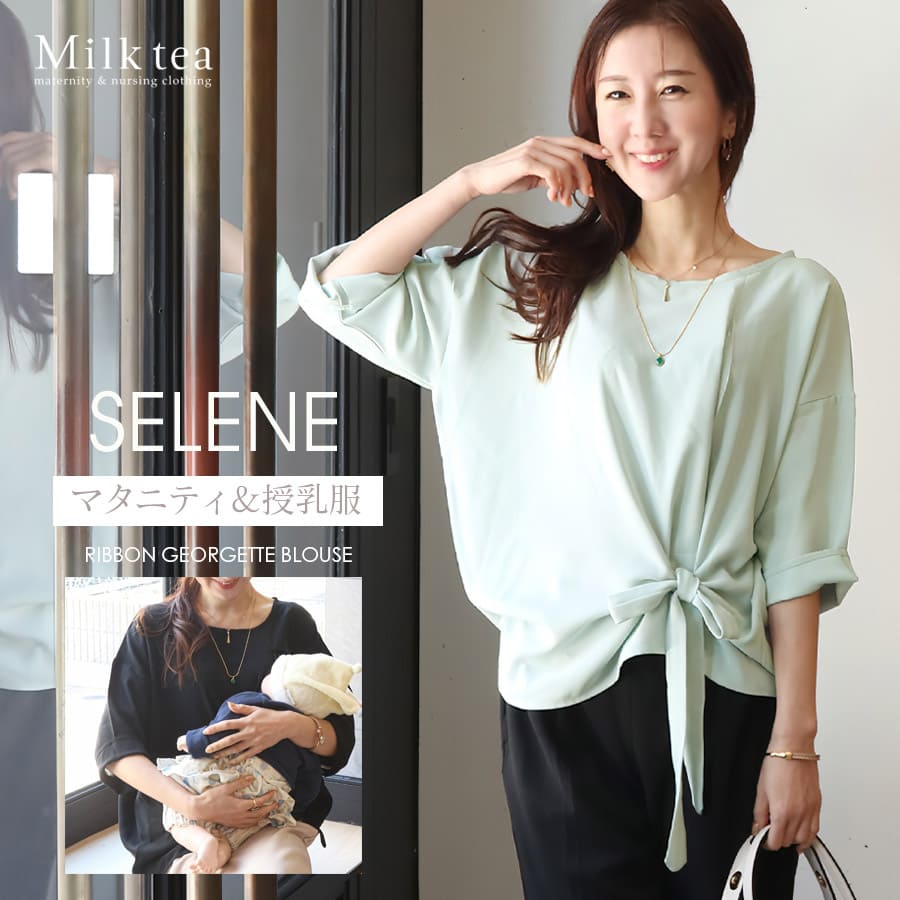 メーカー希望小売価格はメーカーカタログに基づいて掲載しています---------------------- Milk tea ORIGINAL No:8987 セレーネ・ジョーゼットリボンブラウス ---------------------- さらりとした上品で美しいジョーゼット素材を使ったリボンがアクセントの大人可愛い<授乳&マタニティ対応>ブラウス。 オーバーシルエット&ドロップショルダーでゆったりとしたシルエットながら、落ち感が綺麗ですっきり見えるデザイン。 フロントのリボンが愛らしいアクセントになった、女性らしい一枚です。 普段使いはもちろん、おでかけや、お仕事服、フォーマルなど様々なシーンでお使いいただけます。 ---------------------- DETAIL ---------------------- ●オーバーシルエットで体のラインを拾いにくく華奢見え効果抜群。 ●ポリエステル100%でお家でイージーケアOK。 ●フロントのリボンがアクセント。お腹にあわせて調整できます。 ●左胸前部分の切り替え部分に配置したジッパーを開いて簡単授乳OK。 ●ジッパーは閉じてしまえば、授乳服には見えません。 <サイズ> 身丈:約64cm 身幅:約130cm <素材> ポリエステル:100% <モデル> 身長:158cm 【価格は予告なく変更になる場合があります】 ※クリーニングネットを使用してください。濃色は色落ちすることがありますので、他の物と分けて洗ってください。 濡れたままの放置は色移りの原因になりますので、洗濯後は直ちに形を整えて干してください。 汗や摩擦により色移りすることがありますのでご注意ください。 商品カテゴリ:授乳服 授乳 マタニティ マタニティ 妊娠 出産 妊婦 妊婦服 産前産後 出産準備 入院準備 産院 妊娠初期 妊娠中期 妊娠後期 レディース ブラウア トップス 授乳機能付き フォーマル オケージョン パーティ 結婚式 お宮参り 戌の日参り お食い初め 七五三 入園式 卒園式 入学式 卒業式 お呼ばれ 正装 お受験 幼稚園 保育園 小学校 妊婦服 春 夏 秋 冬 オールシーズン 大人可愛い Milktea ミルクティー ミルクティ マタニティ服と授乳服の通販なら【公式】Milk teaオンラインショップ