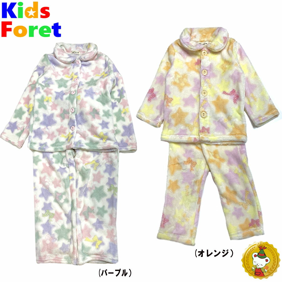 キッズフォーレ(Kids Foret)ガールズ・フリースボアパジャマ・星柄(パープル・オレンジ)(90cm-140cm)