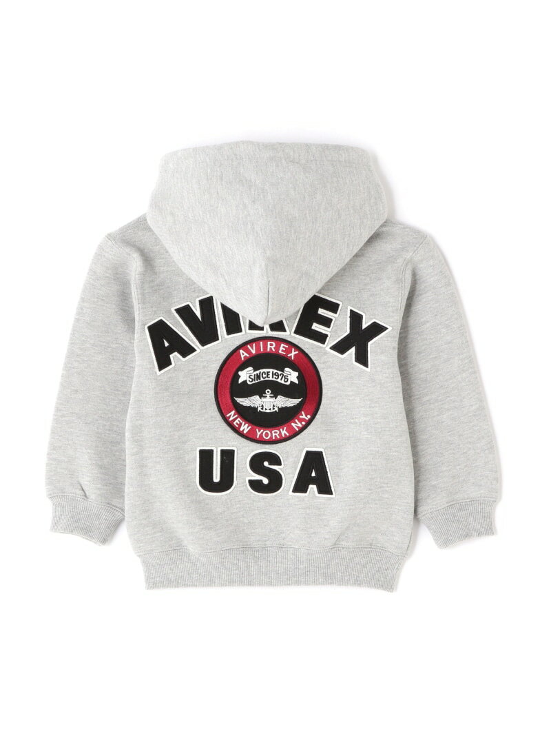 【予約商品について】 ※「先行予約販売中」「予約販売中」をご注文の際は予約商品についてをご確認ください。■重要なお知らせ※ 当店では、ギフト配送サービス及びラッピングサービスを行っておりません。ラッピング・ギフト配送について同時に複数の商品を注文された場合メーカー希望小売価格についてご利用ガイドAVIREX(アヴィレックス)《KIDS / キッズ》VARSITY LOGO SWEAT PARKA / ヴァーシティ ロゴ スウェット パーカー / AVIREX《KIDS / キッズ》VARSITY LOGO SWEAT PARKA / ヴァーシティ ロゴ スウェット パーカー / AVIREX / アヴィレックス商品説明・ブランドの中でも絶大な人気を誇るアイコニックなロゴグラフィックをバックにあしらったジップアップのスウェットパーカー・ロゴグラフィックはフェルトパッチのグラフィックで施し、立体感のあるデザイン・カラーバリエーションはブラック、オレンジ、グレーで様々な大人顔負けのスタイリングが可能・スウェットパンツとセットアップで着用可能【AVIREX/アヴィレックス】1975年にアメリカ空軍のコントラクターとして創業し、フライトジャケットを供給した事でその認知度を飛躍的に高めたAVIREXは、1985年、デザインへの不屈の精神でスポーツカジュアルにも進出した。AVIREX VARSITYは、"古き良きアメリカ"をテーマにしたスポーツラインで、アヴィレックスならではのカラーリングと独創的なグラフィックデザインがHIPHOPシーンを中心とした人気アーティストやスポーツ選手に好んで着用され、米国の若者のステータスブランドへと拡大した。クラシカルでありながらもどんなシーンでも色褪せないAVIREX VARSITYのウェアは、性別や国籍を問わず、アメリカンヒーローの精神を信じるすべての人たちに今も支持され続けている。型番:783-3931951-382-30 JK6052【採寸】100:バスト70cm、着丈39cm、肩幅34cm、袖丈32.5cm120:バスト82cm、着丈45cm、肩幅39cm、袖丈41.5cm140:バスト92cm、着丈51cm、肩幅43cm、袖丈49.5cm商品のサイズについて【商品詳細】中国製素材:(本体)コットン65%,ポリエステル35%(リブ部分)コットン55%,ポリエステル40%,ポリウレタン5%(刺しゅう糸)ポリエステル100%サイズ:100、120、140洗濯機可、ドライクリーニング不可※画面上と実物では多少色具合が異なって見える場合もございます。ご了承ください。商品のカラーについて