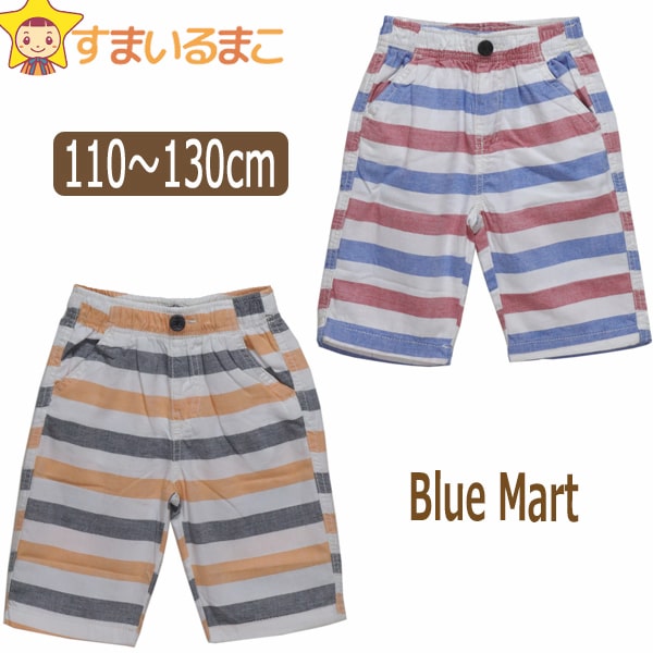 男の子 ボーダー ハーフパンツ 110cm 120cm 130cm レッド系 オレンジ系 13574A Blue Mart ブルーマート 子供服 キッズ ジュニア パンツ ズボン ボトムス ウエストゴム zg008 yob2508