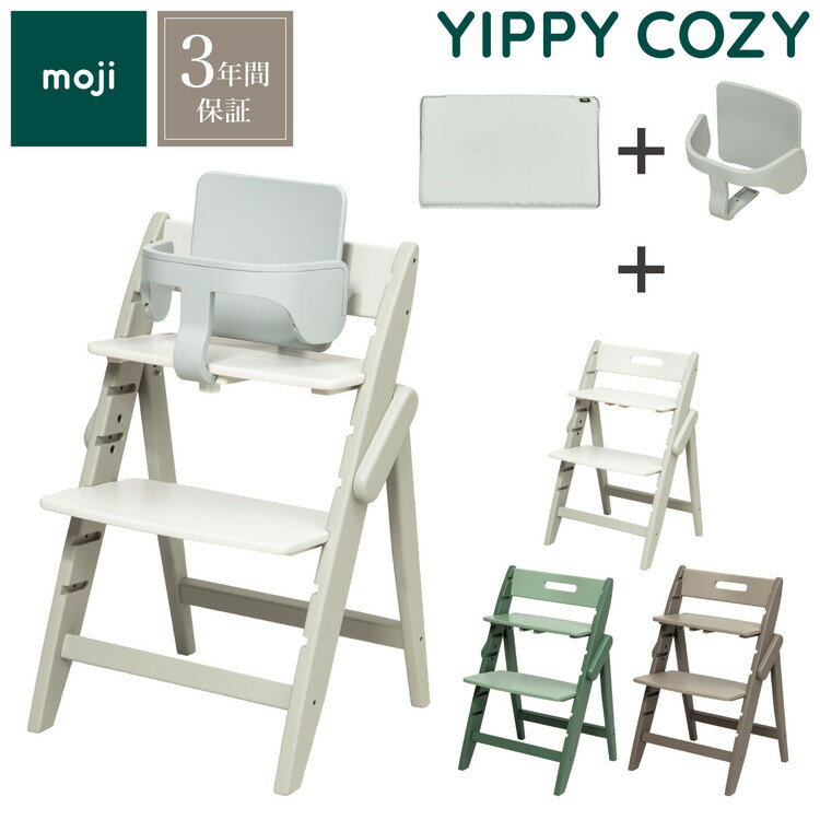 3点セット販売 moji モジ ベビーチェア イッピー コージィR スターターセット フィットクッション 3点セット YIPPY COZY R コージー ラバー材 折りたたみ ハイチェア キッズチェア イス 3年保証(代引不可)【送料無料】