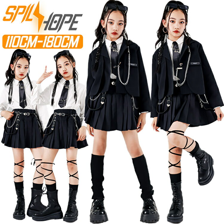 スーツセット キッズ ダンス衣装 キッズダンス フォーマル セットアップ 長袖 ゆたっり ジャケット シャツ ネクタイ スカート 女の子 小学生 中学生 入学式 卒業式 七五三 結婚式 韓国 ファッション 演出服 舞台服 発表会 団体服 jazz ジャズダンス HIPHOP K-POP oversize