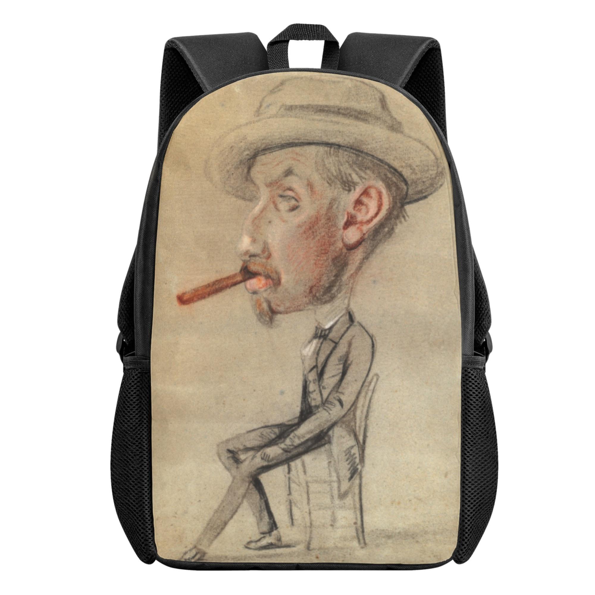 クロード・モネ 大きな葉巻を持つ男の似顔絵(キッズバックパック) キッズバックパック キッズ 全て 大きな葉巻を持つ男の似顔絵 Caricature of a Man with Big Cigar パブリックドメイン アート