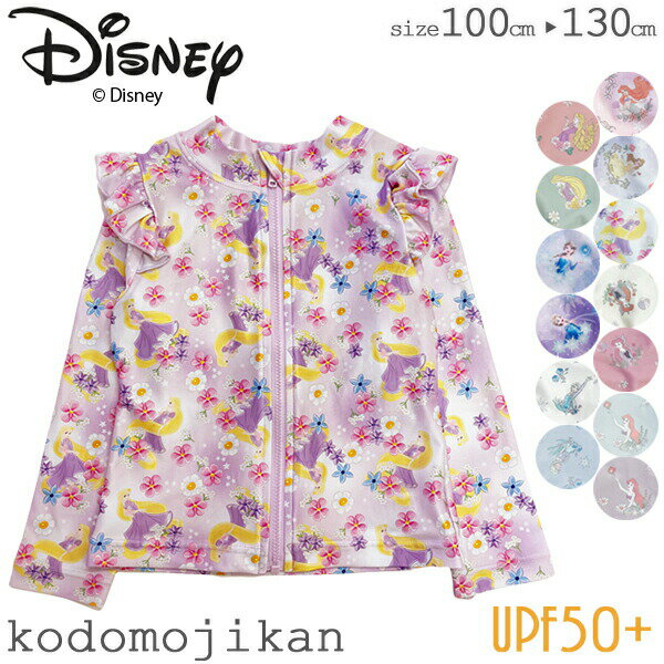 ラッシュガード キッズ 水着 女の子 ディズニー プリンセス 長袖 子供 フリル アリエル アナ雪 エルサ ラプンツェル UPF50+ 夏 スイムウェア 水遊び ファスナー UV対策 日よけ スイミング 保育園 入園準備 小学校 100cm 110cm 120cm 130cm クリスマス