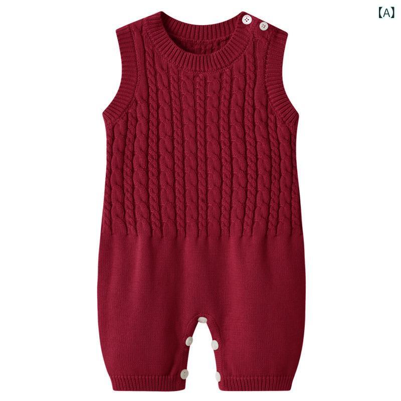 ロンパース ベビー 新生児 男女兼用 ユニセックス 韓国風 ニット コットン 綿100% ケーブル編み ノースリーブ ベスト 帽子付き 秋冬 プルオーバー 普段着 部屋着 お出かけ 肌に優しい 柔らかい