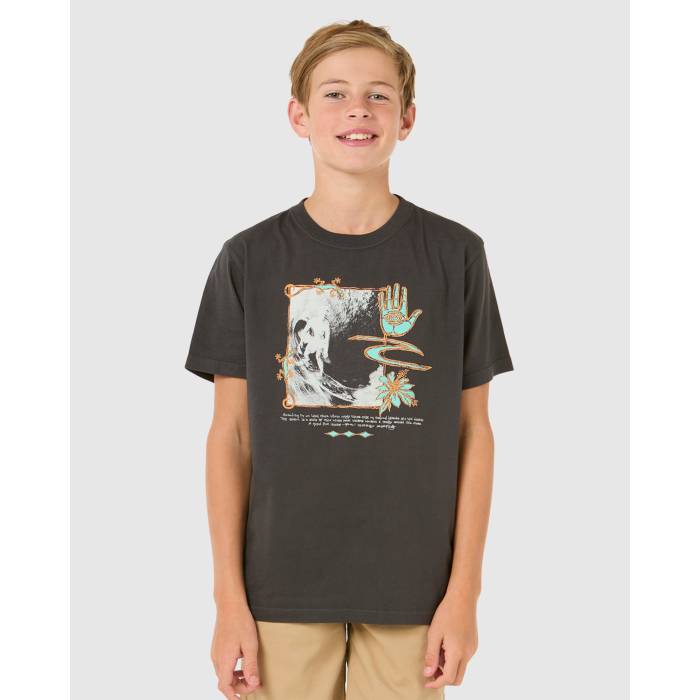 リップカール Rip Curl 【 Boys 8-16 Raw Energy Gecko T-Shirt Boys Washed Black 】 エナジー Tシャツ キッズ ベビー マタニティ キッズファッション トップス Tシャツ カットソー ジュニア キッズ 黒色 ブラ
