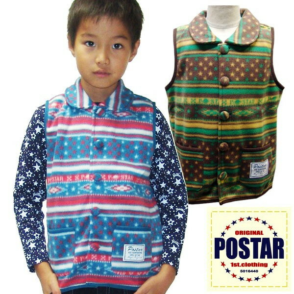 《楽天スーパーSALE 半額!! 199円 → 99円》キッズ 子供服 フリースペスト 男の子 プリントベスト ベビー服 男児 80cm 90cm 95cm 100cm 110cm 120cm 130cm ポスター POSTAR「1341-21」