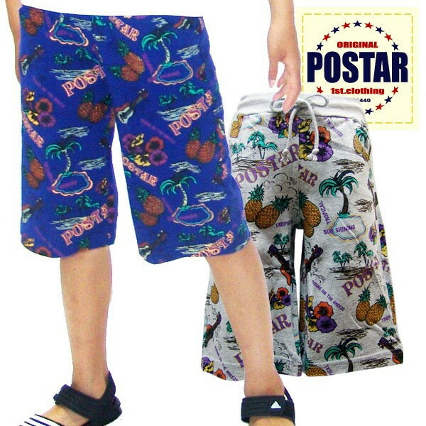 【ブランド:POSTAR】 【キッズ ハーフパンツ】 ウクレレ、ハイビスカス、パイナップル♪とってもトロピカル! 【サイズ:80/90/95/100/110/120/130】 ・80⇒総丈:約30cm/ウエスト巾:20cm/股下:11cm/わたり:18cm/裾巾14cm ・90⇒総丈:約32cm/ウエスト巾:21cm/股下:12.5cm/わたり:19cm/裾巾15cm ・95⇒総丈:約34cm/ウエスト巾:22cm/股下:14cm/わたり:20cm/裾巾16cm ・100⇒総丈:約37cm/ウエスト巾:23cm/股下:19cm/わたり:21cm/裾巾17cm ・110⇒総丈:約40cm/ウエスト巾:24cm/股下:21cm/わたり:22cm/裾巾18cm ・120⇒総丈:約43cm/ウエスト巾:25cm/股下:23cm/わたり:23cm/裾巾19cm ・130⇒総丈:約46cm/ウエスト巾:26cm/股下:25cm/わたり:24cm/裾巾20cm 【カラー:ブルー/杢グレー】 【素材:本体/綿100% 附属/綿95% ポリウレタン5%】 ※注意事項※ 採寸は平置きでの計測です。若干の誤差が生じる場合もあります。 お手持ちのお洋服を平置き計測して頂き、記載のサイズ寸法をご参考下さい。