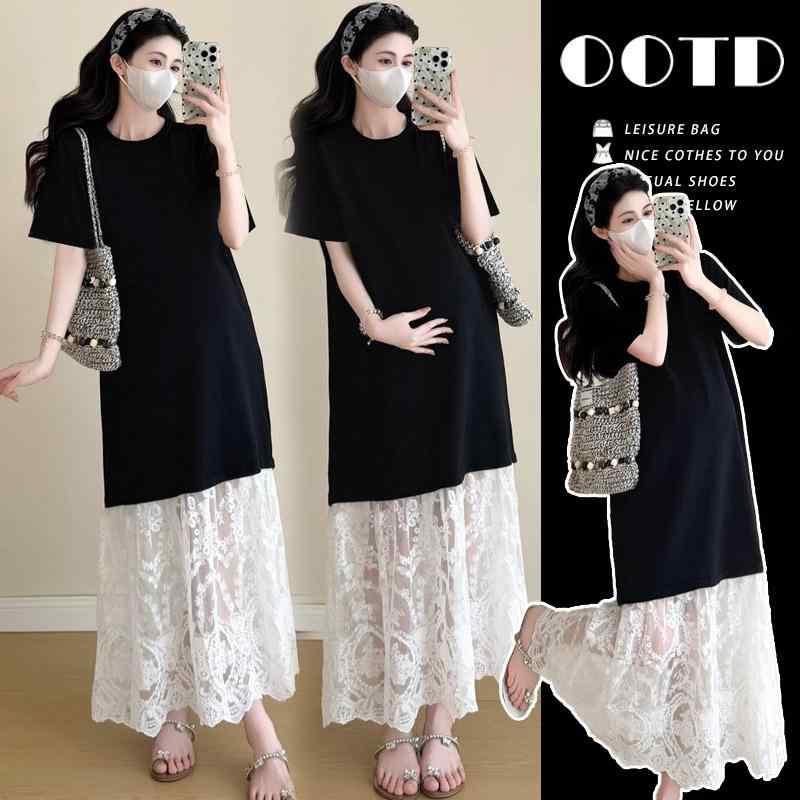 マタニティ 夏物 半袖 切り替えワンピース ゆったりサイズ 上質