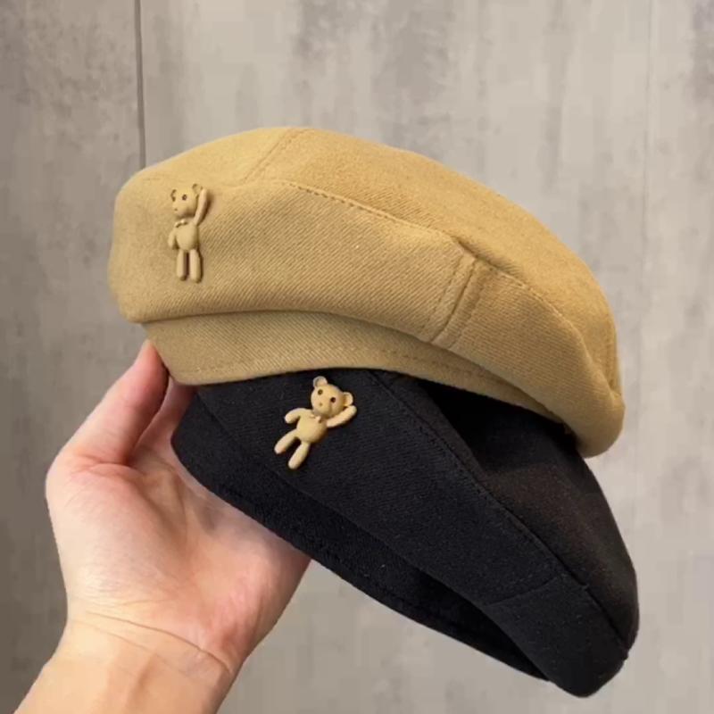 キッズ ベビー ベレー帽 レトロ 子供 ウール 画家 男の子 女の子 帽子 春秋冬 幼児 ガールズ 茶 黒 クマ シンプル 韓国 防寒 暖かい あったか ショッピング お出かけ かわいい