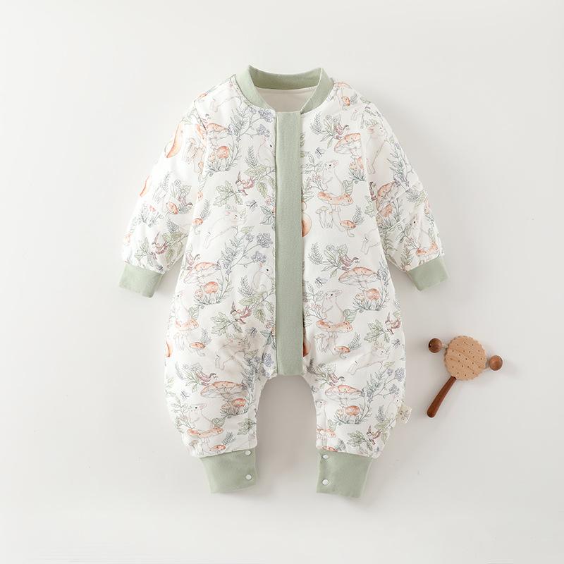 スリーパー ベビー 赤ちゃん 新生児 足つき ロンパース型 純綿 コットン 縫い目なし 袖着脱式 薄手中綿120g 秋冬 室内向け