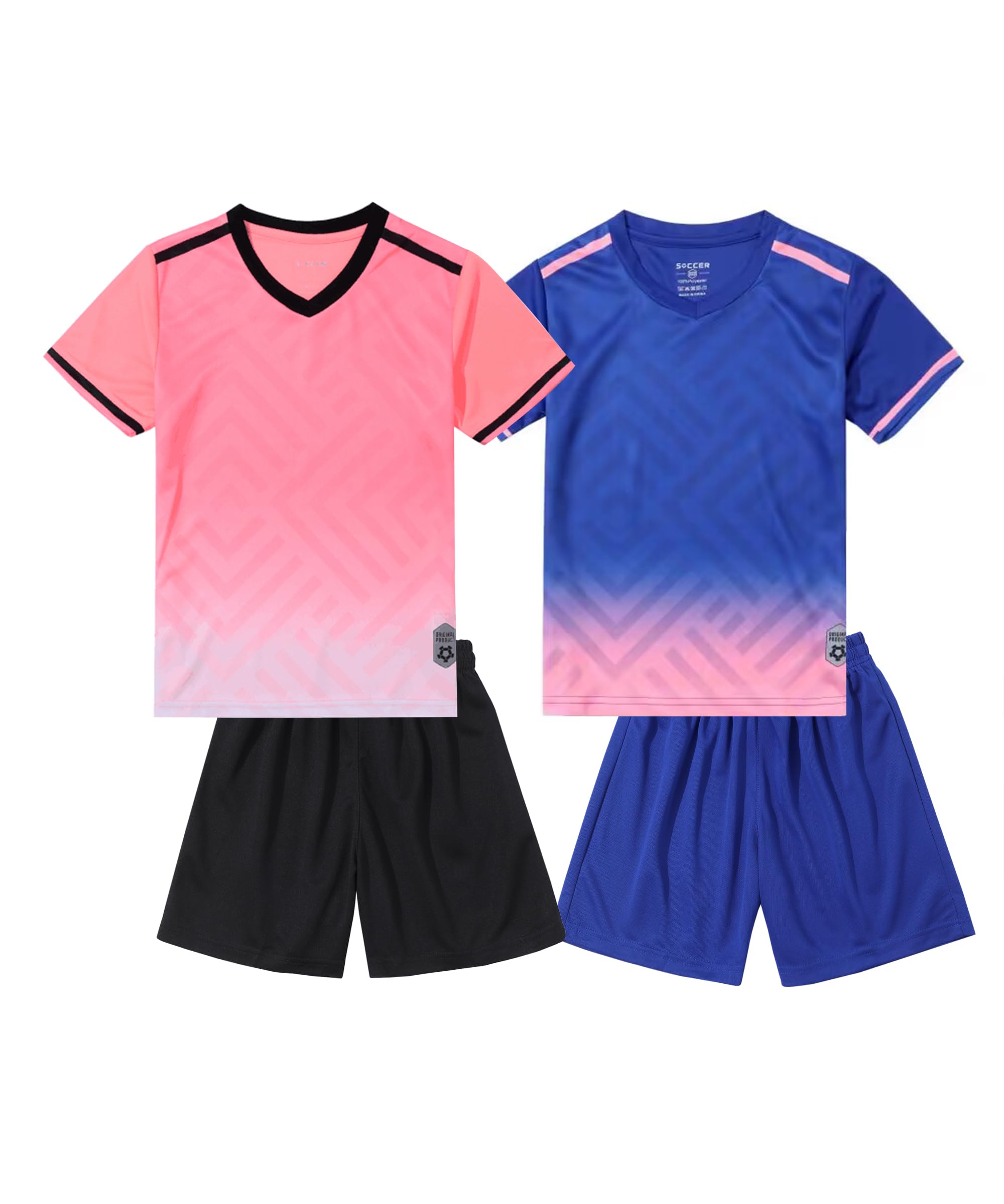 【送料無料】 ボーイズ2パックサッカージャージーとショートセットクイックドライスポーツチームトレーニングユニフォームニット 色:ピンク&ブルー、サイズ:150