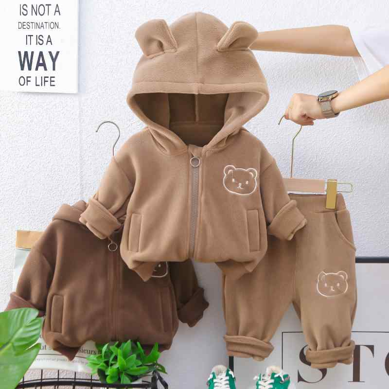 ベビー キッズ 男女兼用 秋冬 厚手 裏起毛 フード付き 長袖 ジップアップ パンツ セットアップ かわいい おしゃれ カジュアル トレンド 普段使い お出かけ 綿混 アニマル柄