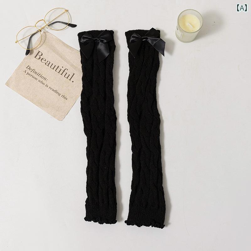 ・カテゴリ: レッグウォーマー・スタイル: ・性別: 女性・対象年齢: 13〜18歳・シーズン: オールシーズン・主な素材: 綿75%・生地種類: タオル生地・丈: ハイソックス丈・柄: ケーブルニット・装飾: リボン・加工: ジャカード織り・編み方: 二本針・つま先縫製: 機械縫い・機能: 通気性、吸汗性・カラー展開: ブラック、ホワイト・サイズ展開: フリーサイズ